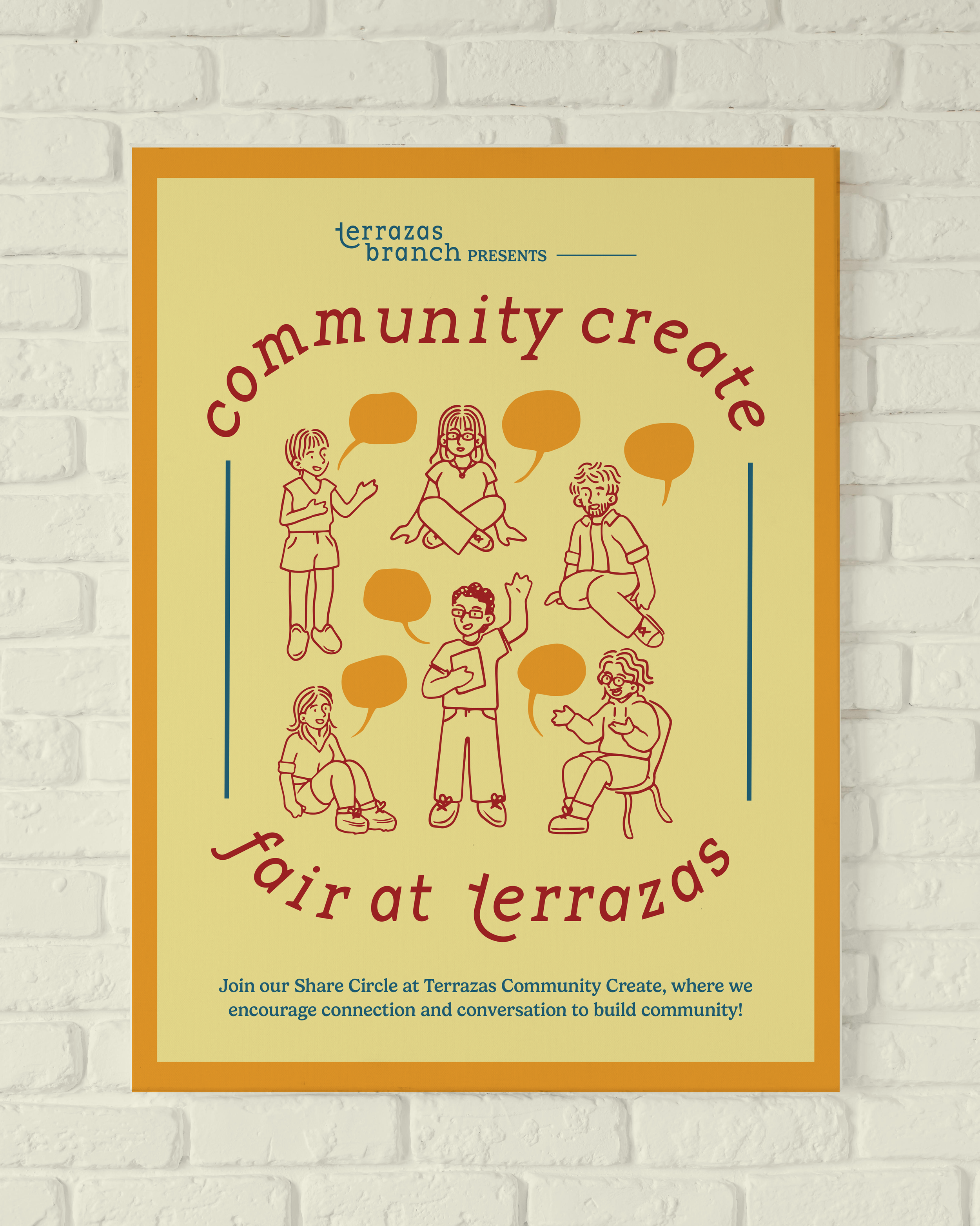 In an effort to promote the Terrazas Library branch of the Austin Public Library system, I developed a new visual identity from the ground up - including a custom wordmark and a variety of promotional materials.